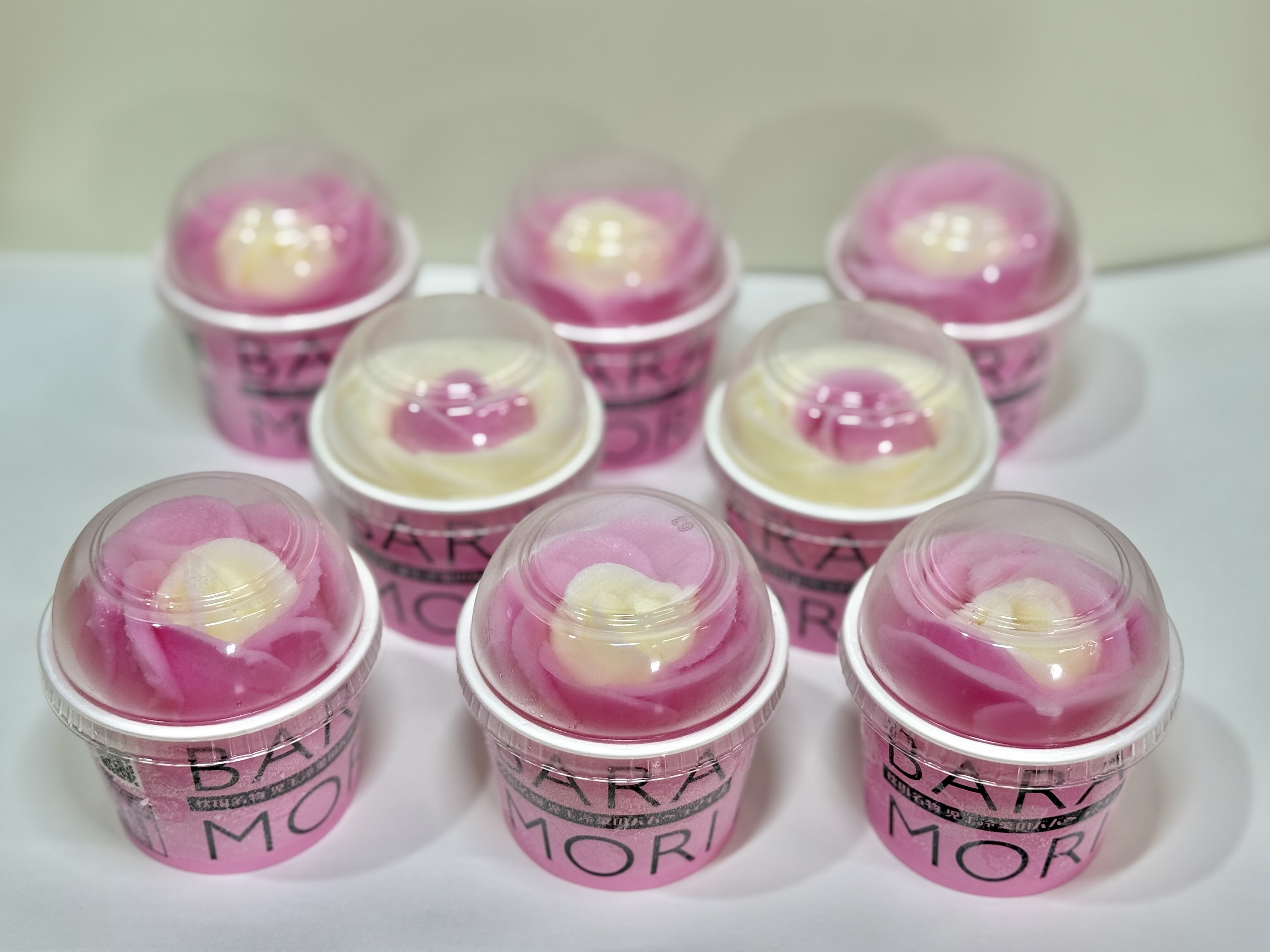 バラの花が咲いたようなきれいな盛り付けが特徴のカップアイスです。